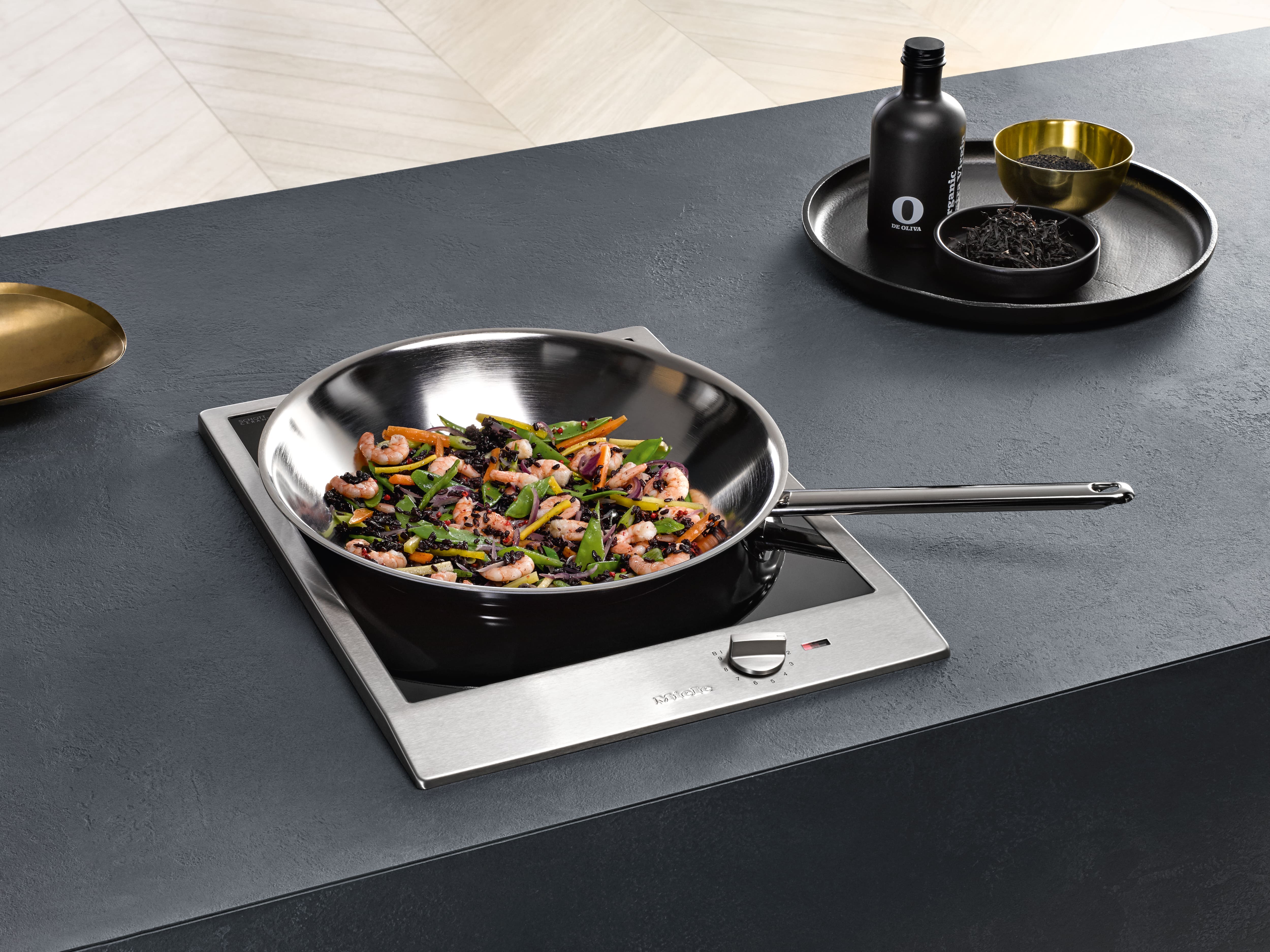 Сковорода-вок для CombiSet оптимально адаптирована к изгибу индукционной конфорки-вок Miele.