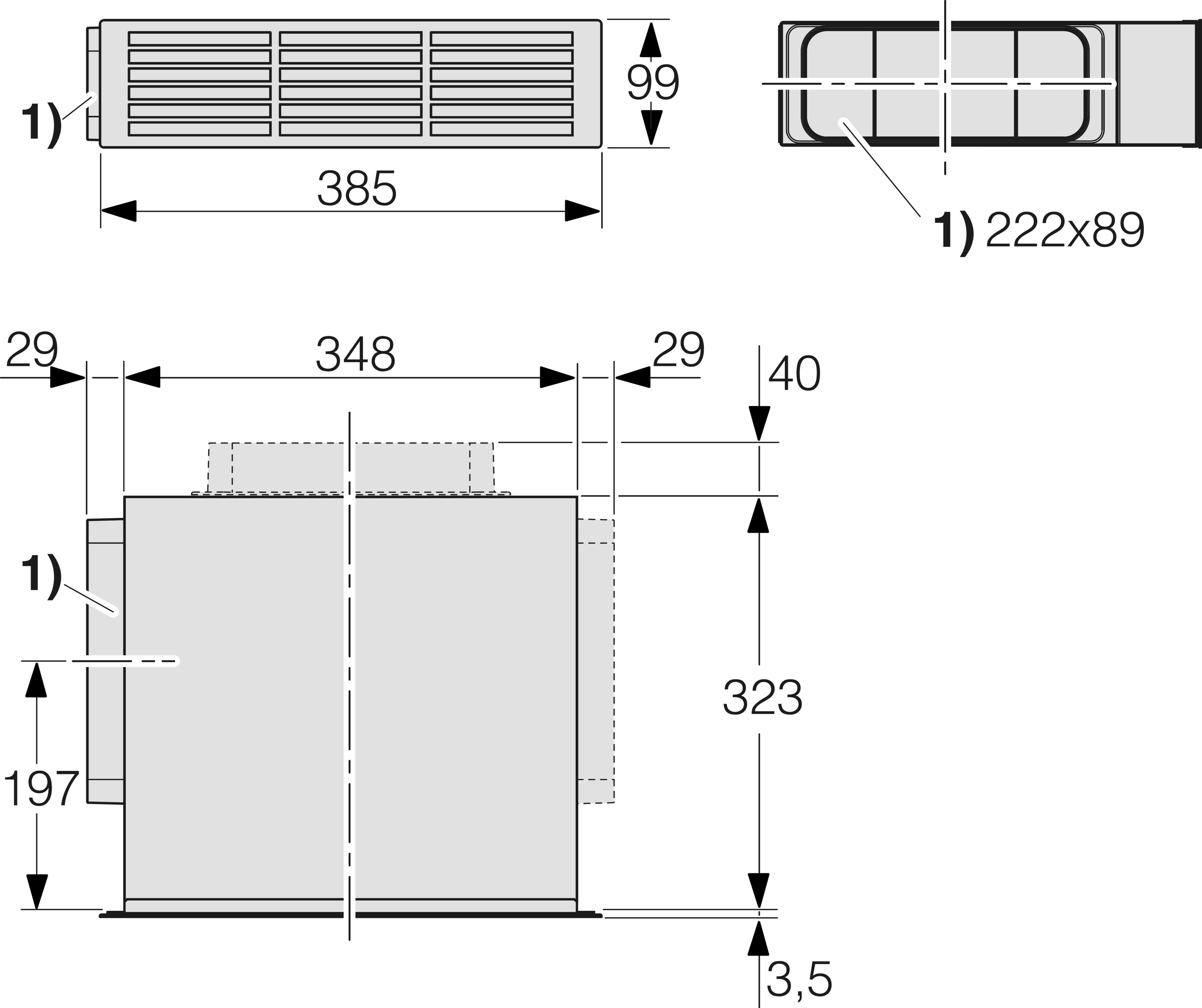 • Вывод воздуха слева, справа и/или сзади, в комплекте 2 разъема