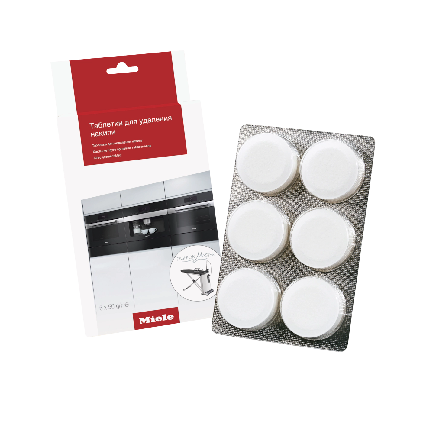 Для получения оптимального результата очистки техники Miele от накипи мы рекомендуем специально разработанные таблетки. Они могут использоваться во всех кофемашинах Miele, пароварках не под давлением Miele, а также плитах/духовых шкафах с режимом "Конвекция с паром"