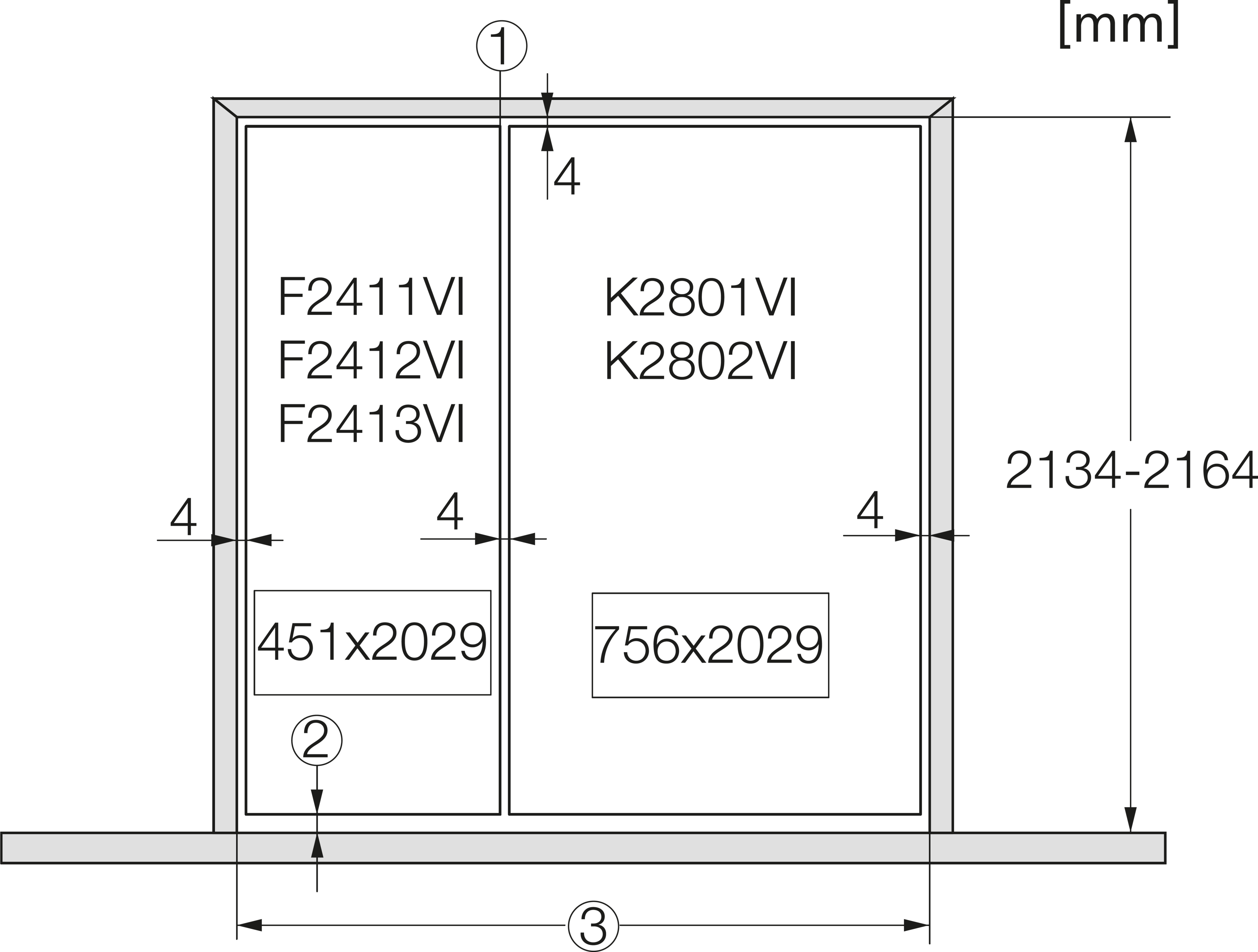 Минимальная высота ниши, мм