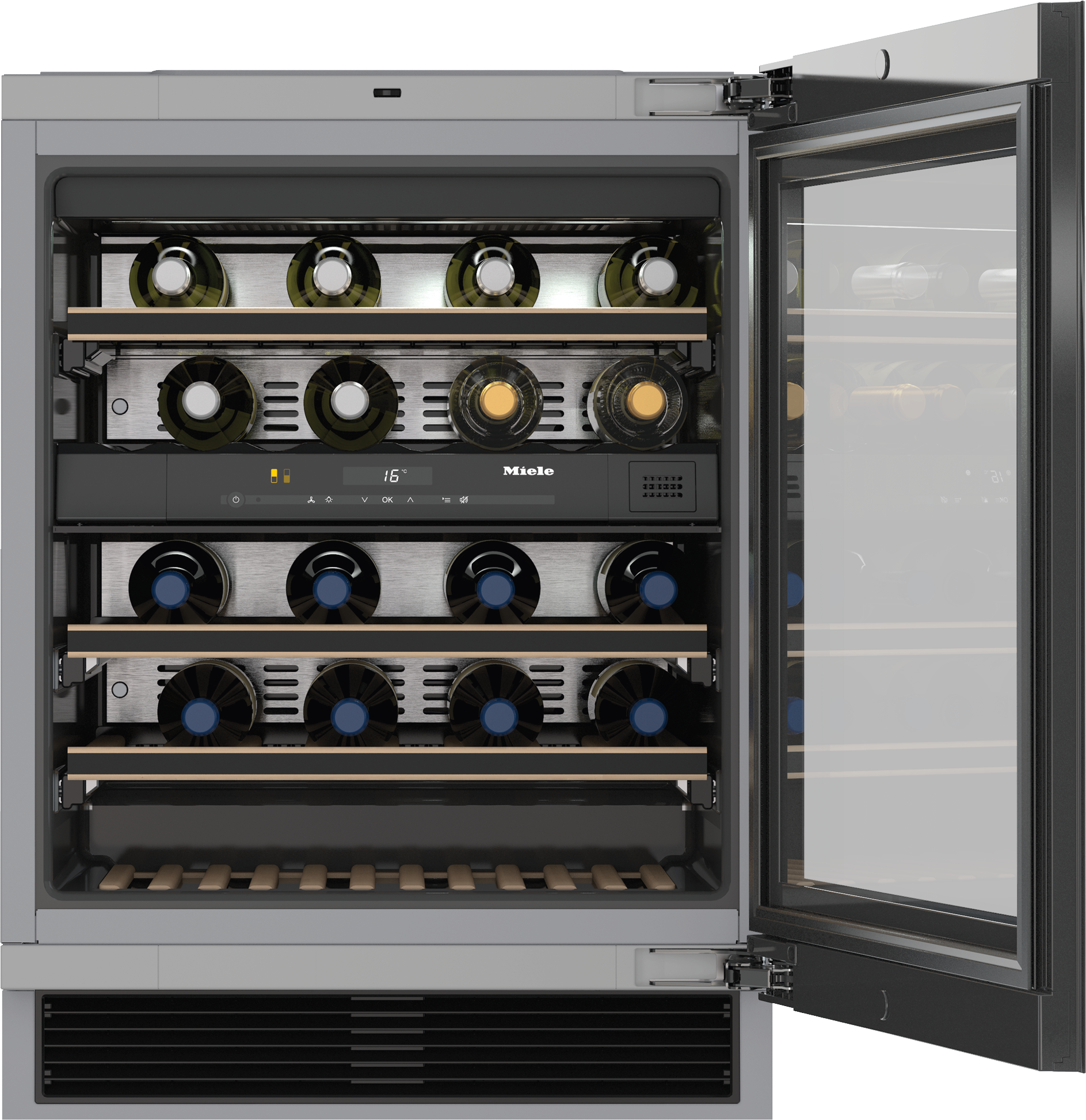 Хранение вина — дело тонкое: у каждого сорта — своя оптимальная температура для хранения. Для создания нужных условий в винных холодильниках Miele есть до трёх температурных зон. В них можно задать свою температуру для красного, белого и игристого вина. А ещё один вариант — одну из зон выделить для охлаждения вина перед подачей: то, что пригодится в период праздников.