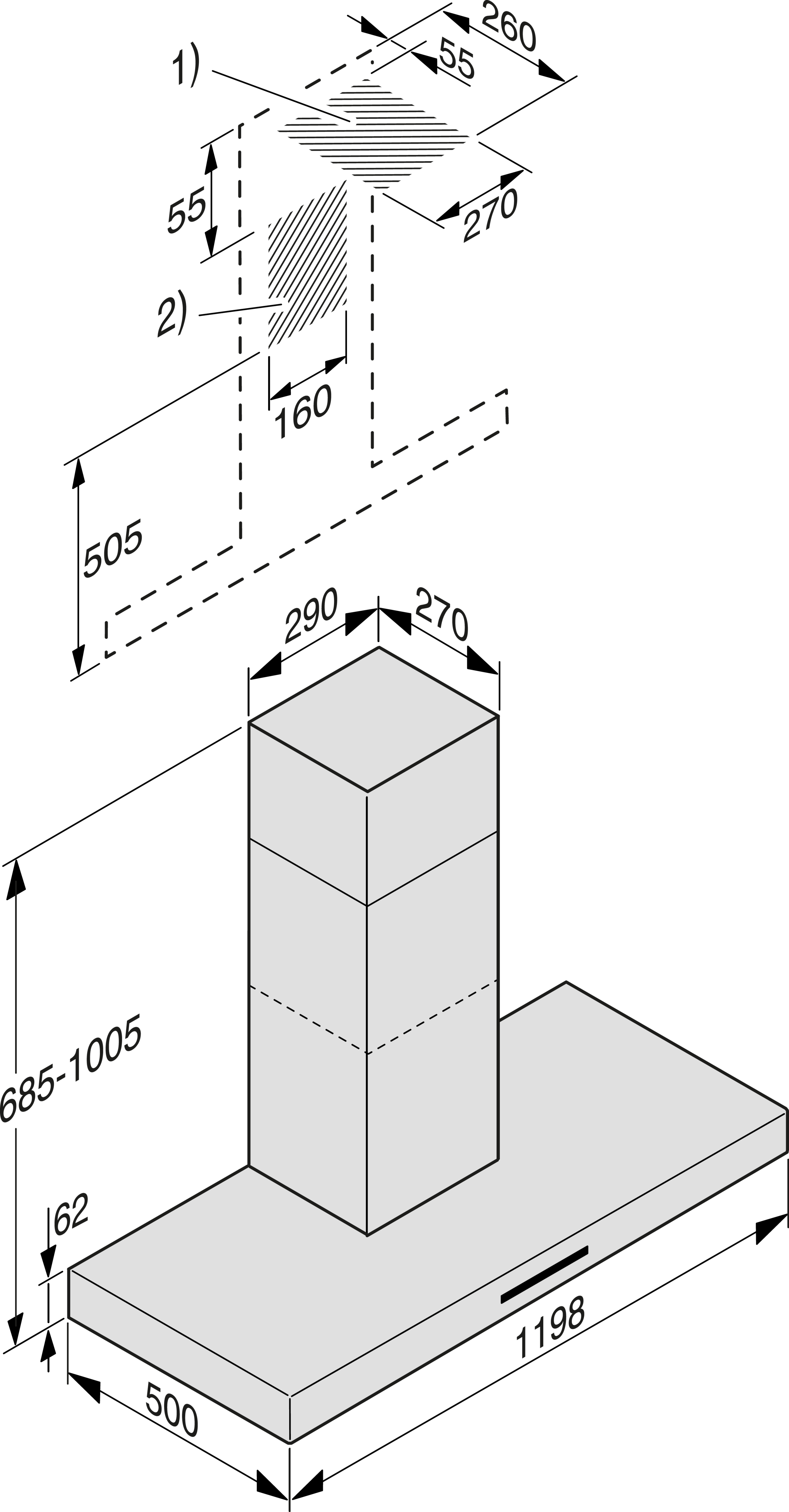 Дизайн вне времени: вытяжка из нержавеющей стали шириной 1198 мм.