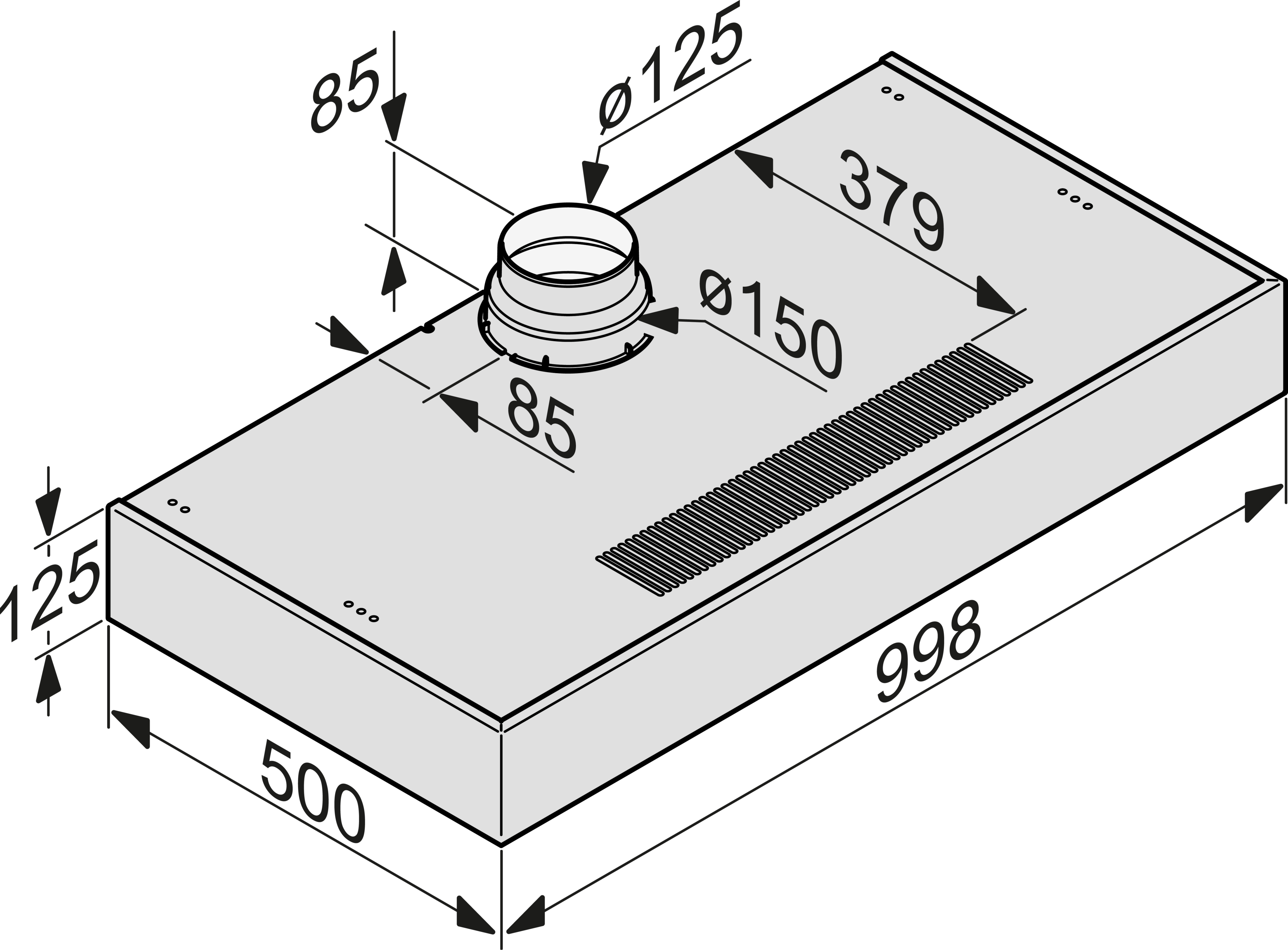 Высота корпуса вытяжки, мм