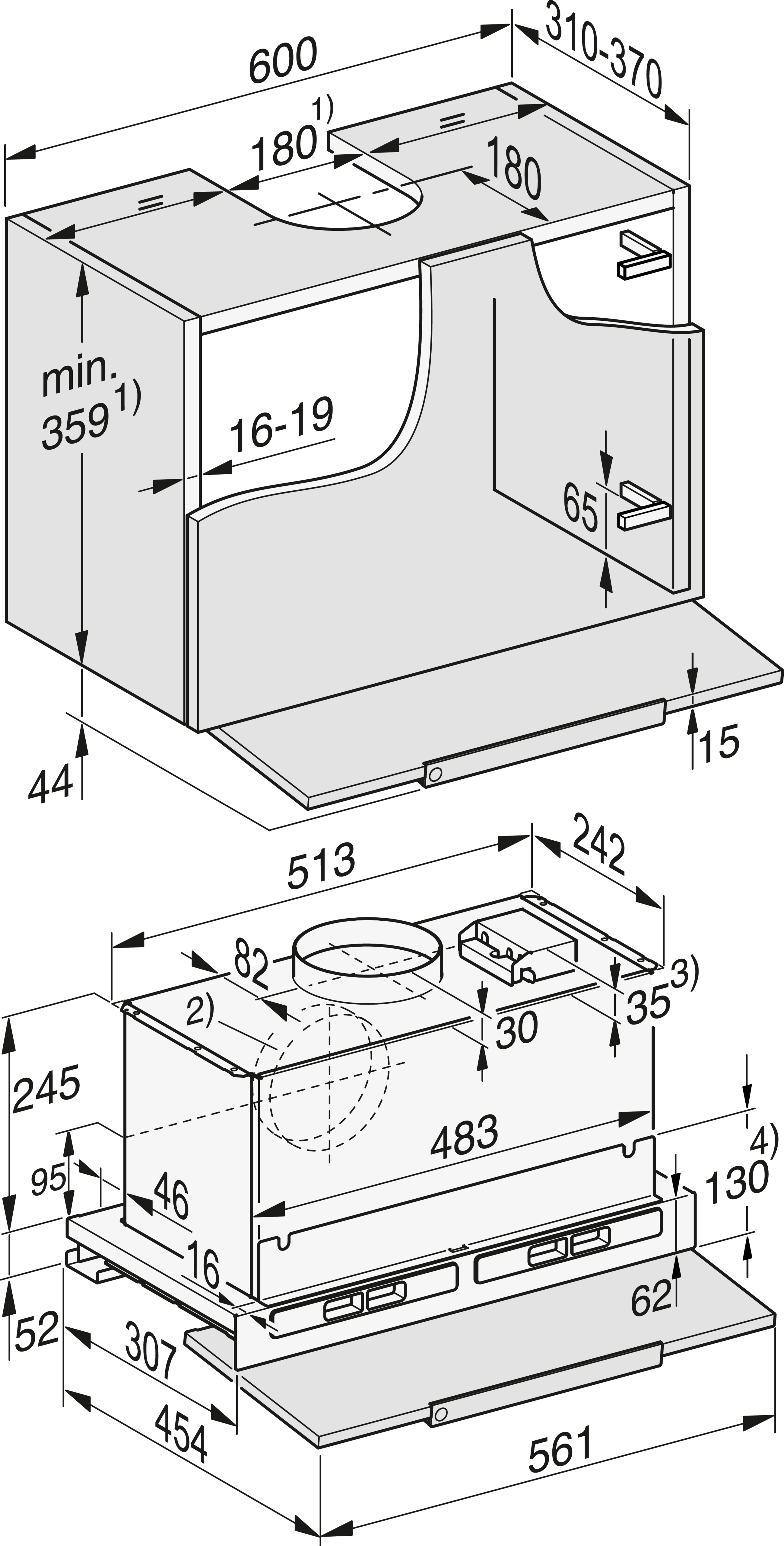 Установка встраиваемой в мебель бытовой вытяжки